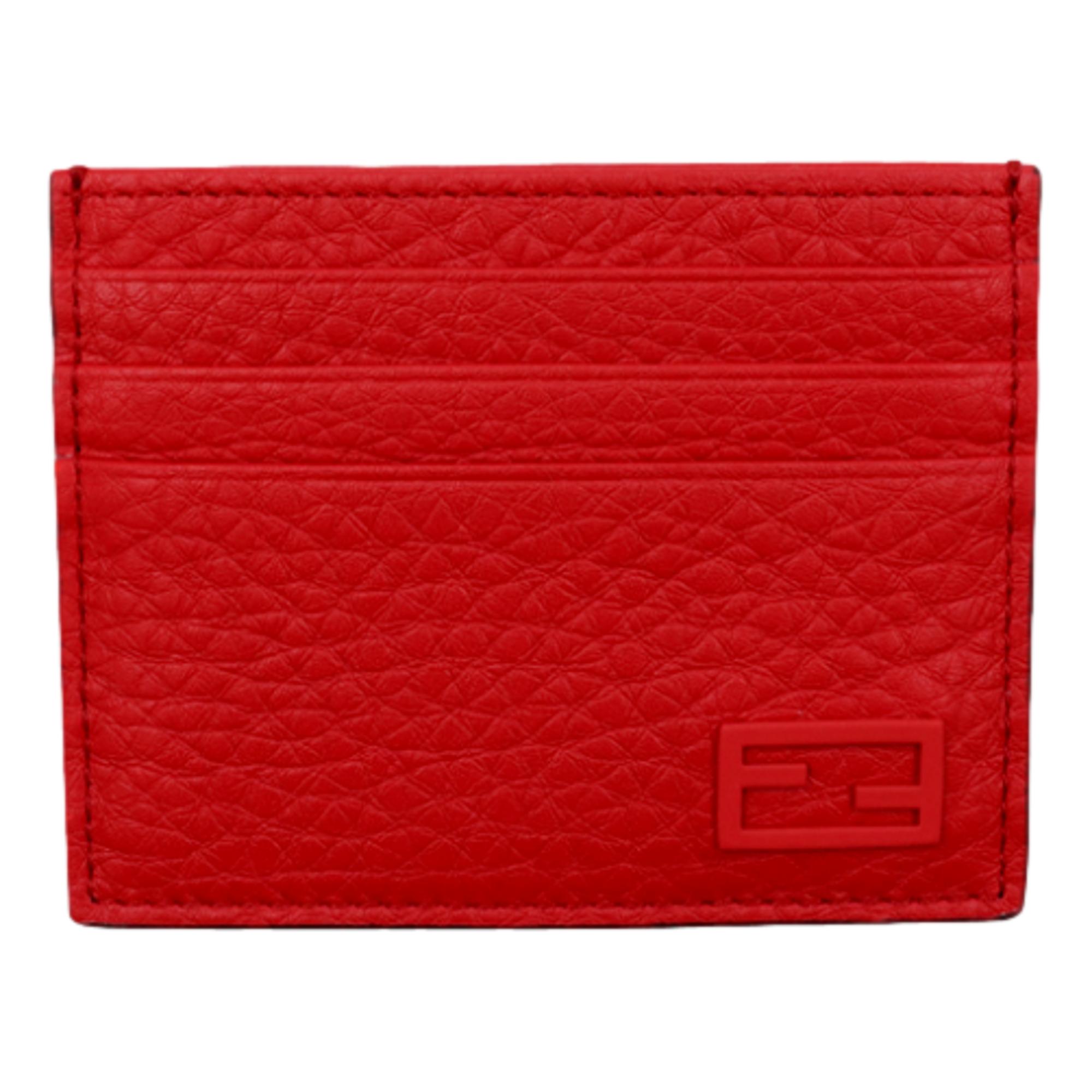 This card case pairs red grained calfskin leather and Fendi logo to create the perfect card case. There are three card slots on each side of the card case separated by one bill slot in the center. This card case is so stylish and perfect for carrying your personal information and credit cards. This card case’s sleek style is perfect for both men and women.